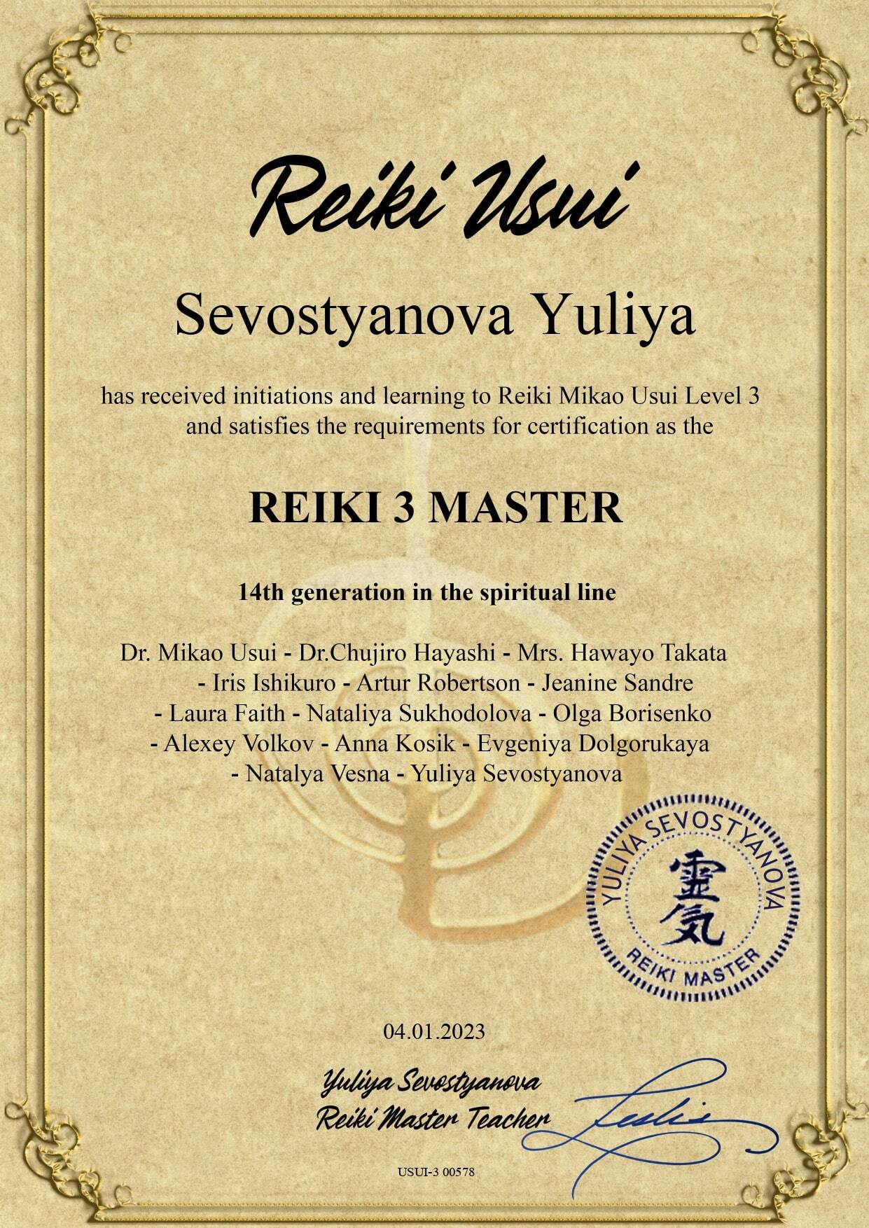 Рейки 3 можно получать только имея настройки Рейки 1 и 2.